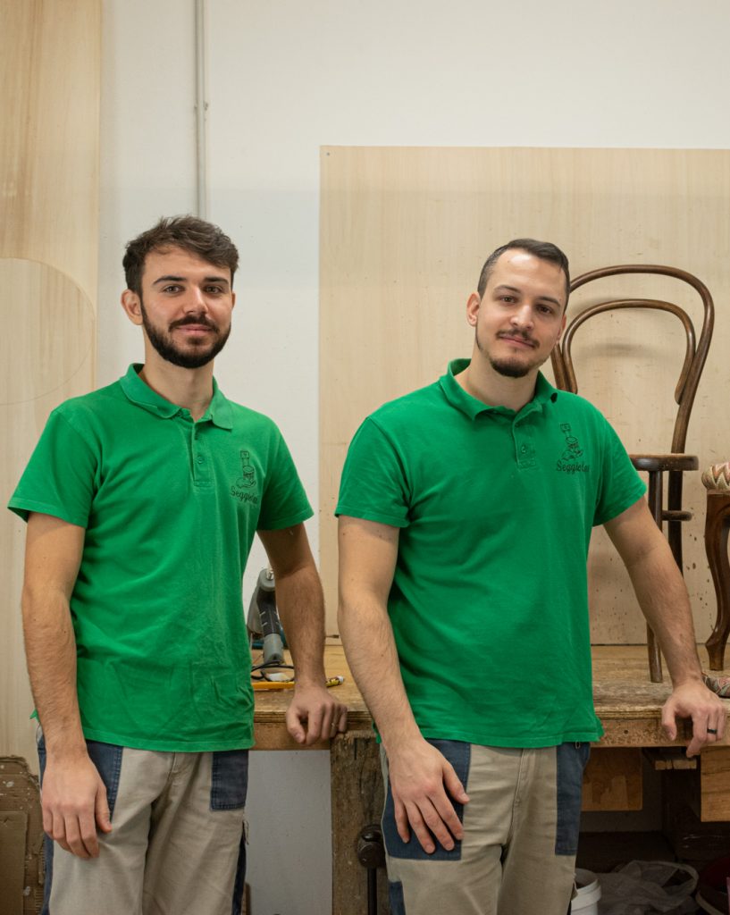 Siamo Mikel e Matteo, 2 restauratori specializzati con 20 anni in due di esperienza di restauro di sedie.